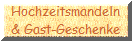Wäre es nicht schön, jeder Gast bekommt ein kleines persönliches Geschenk von Ihnen als Dankeschön und zur Erinnerung an einen ganz besonderen Tag ? Ein Brauch, der bei Festen wie Hochzeiten, Taufen und anderen Festen in Italien, Frankreich und anderen Ländern verbreitet ist, ist es 5 Mandeln an die Gäste zu verschenken.